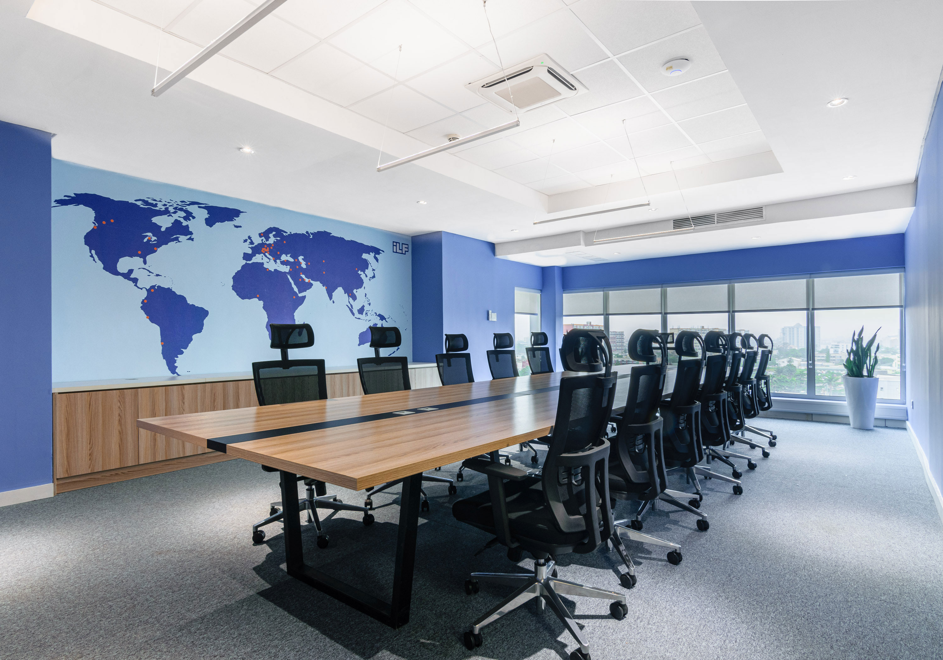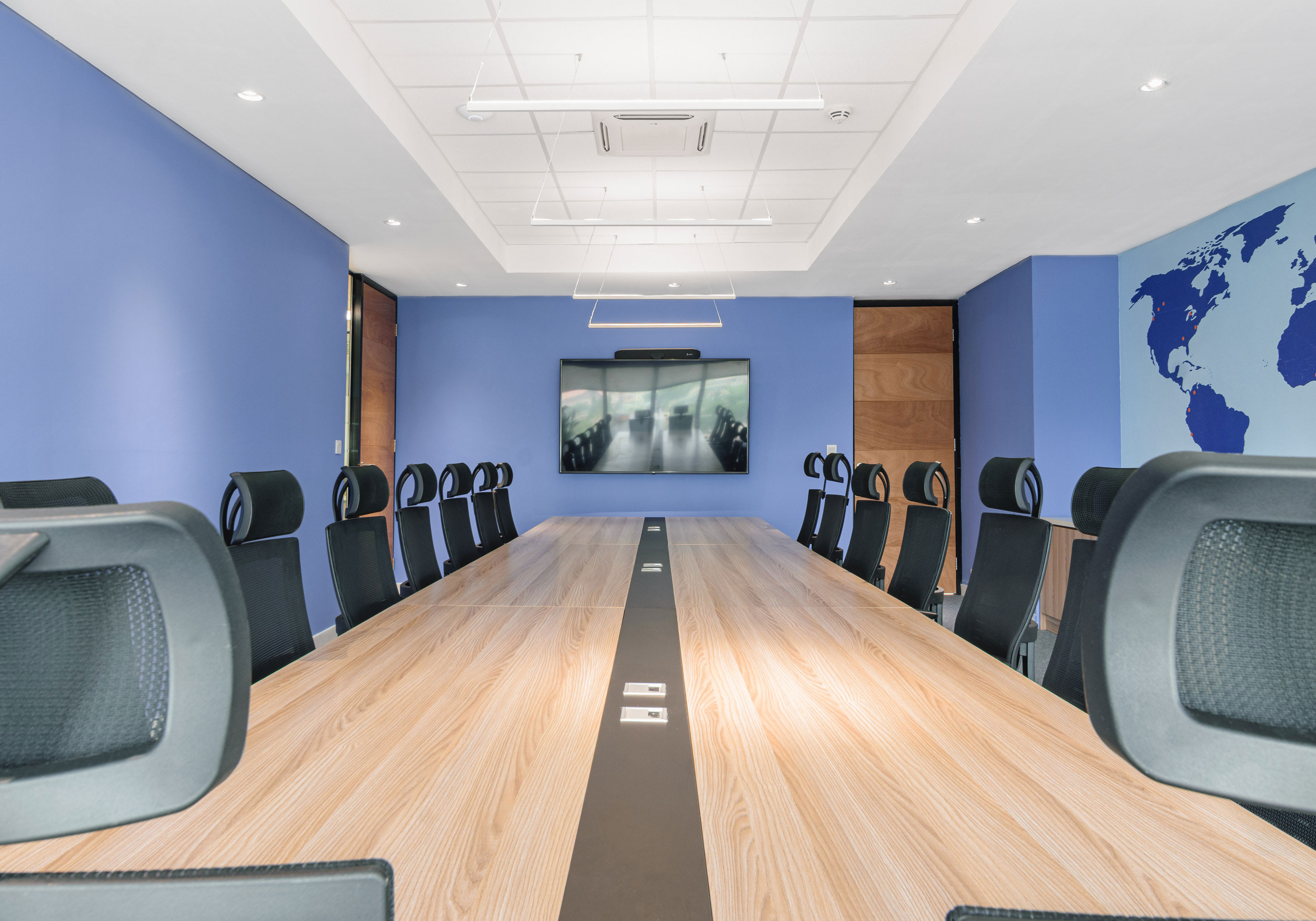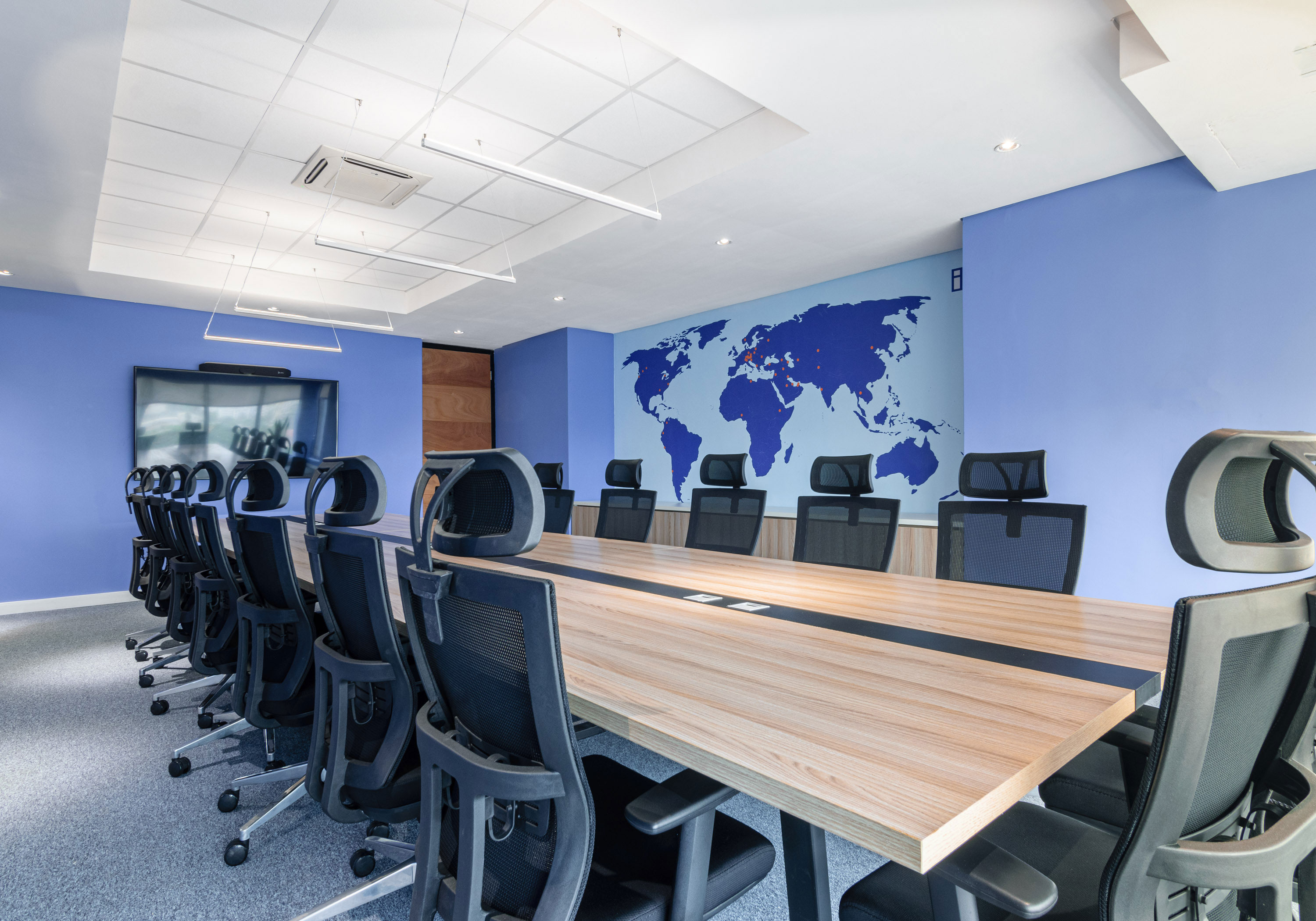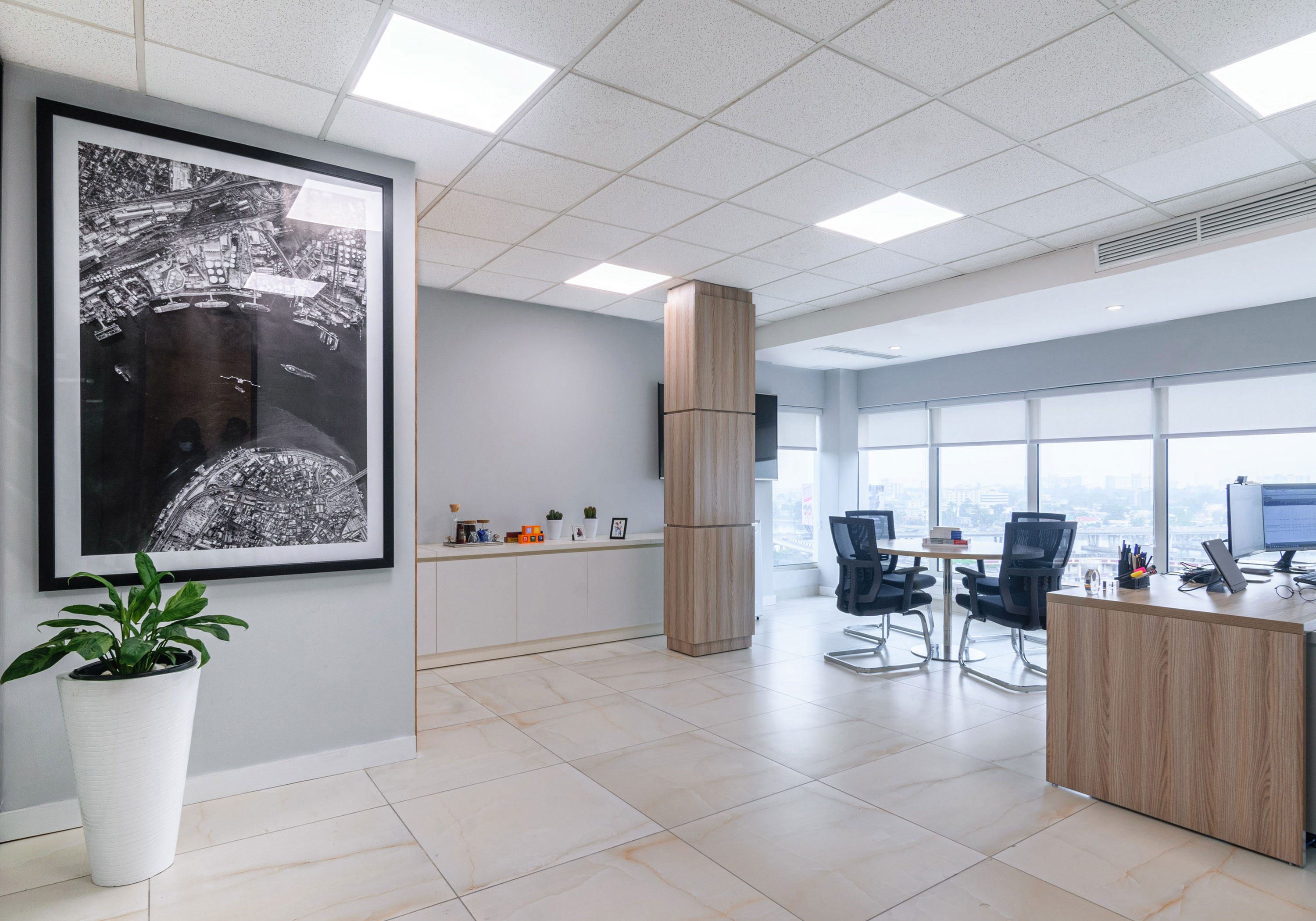 Constructed using a combination of solid and perforated corrugated aluminium sheets traditionally used as roofing in Lagos’s mass housing projects, the striking façade also features LED linear lighting to illuminate the ridged surface, creating a dynamic and unexpected visual effect. In this way, simple and functional materials are elevated to create an optical illusion in which the level of transparency depends on the viewer’s distance from the building. This ingenious façade configuration means that the store has a visible shop window, as well as ample natural sunlight that is sufficiently diffuse to prevent the interior from overheating.