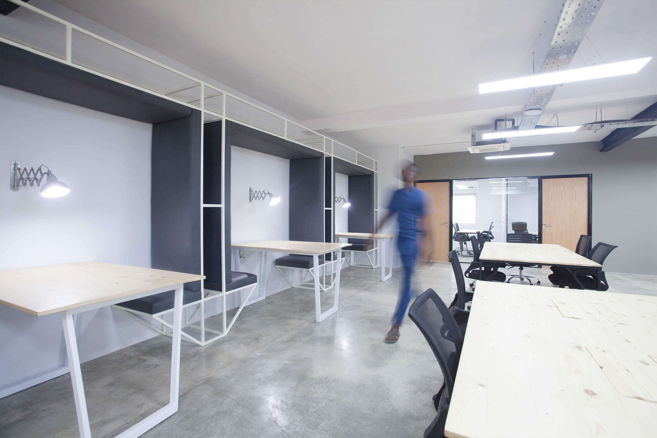 The office space has to accommodate different sectors of the company from the more casual space for the Engineers on the ground floor to the more corporate space for the Finance and Legal on the first floor. Hot-desking is fundamental to the company’s work policy and allows for increased flexibility in how we approached the design.